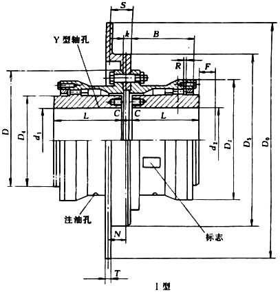 注:1、质量与转动惯量是按最大直径的Y型轴孔计算的近似值,未计算制动盘。 2、不同制动盘直径的C、C1、C2植为表中数值再加K/2。 3、N=S-k/2,表中数值D0为最大时的计算值,S、k见表4.13。 |